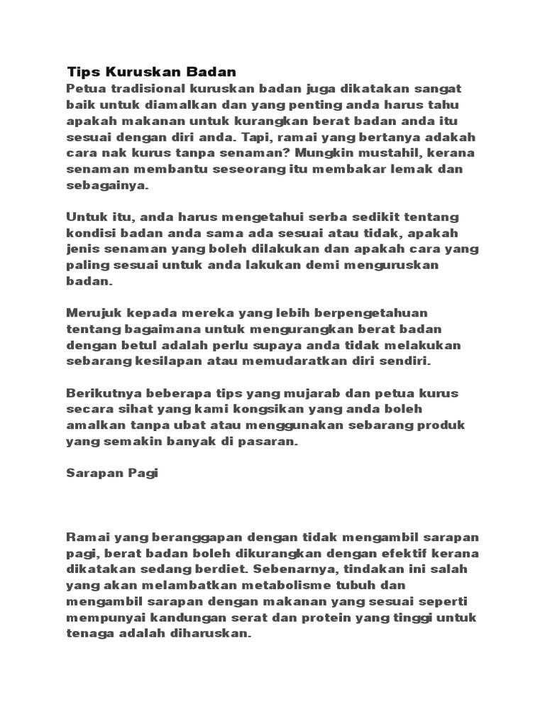 Biasanya, banyak tips hanya menjurus kepada, bagaimana untuk kuruskan badan sahaja. Biasa kita dengar orang kata, sifir untuk kurus ialah 80% pemakanan, 20% senaman.inilah rahsia cara kuruskan badan dengan cepat.paling penting adalah inilah cara kuruskan badan tanpa produk. Jom kami kongsikan cara kuruskan badan dalam masa 60 hari yang selamat dan berkesan. Kelebihan berat badan tidak boleh disepelekan hal itu dikarenakan bisa mempengaruhi penampilan sehingga mengurangi rasa percaya diri. Cara kuruskan badan dalam seminggu | tips kuruskan badan.